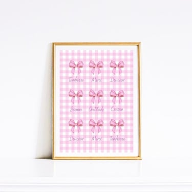 Une collection de 10 posters numériques imprimables en vichy revisité, avec noeuds et mots doux pour créer une ambiance douce.